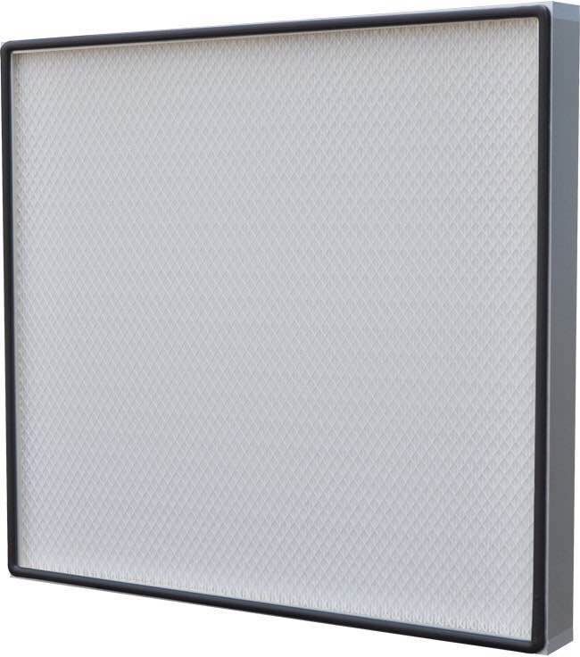PTFE超高效无隔板空气过滤器是用超细玻璃纤维纸等制作而成,用热溶胶作分隔物,与金属外框组合而成。主要捕集0.12um以下的尘粒。