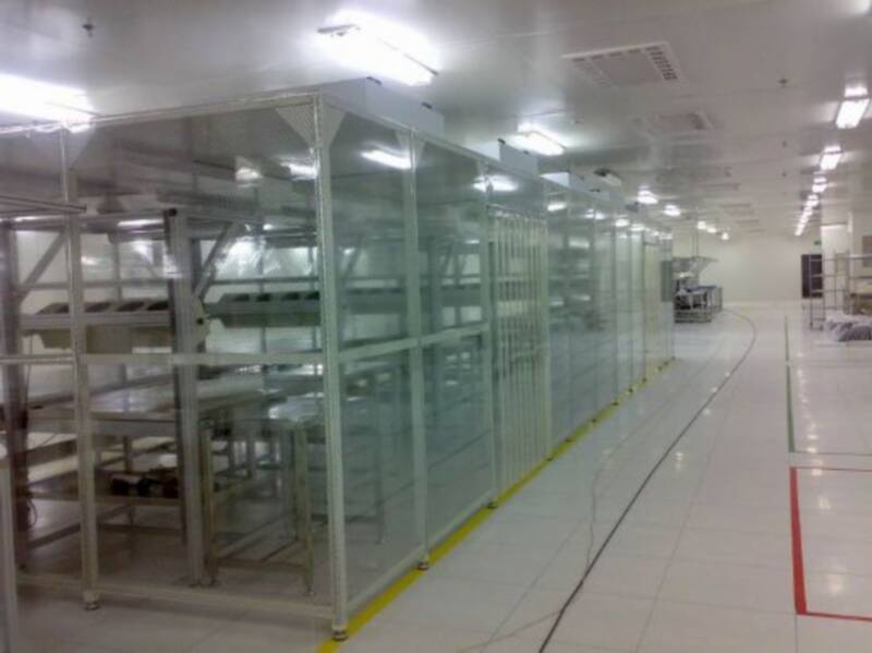 洁净棚采用工业铝材(或不锈钢方通、铁方通喷塑)作为框架,风机滤网机组(FFU)送风,四周悬挂防静电垂帘(或钢化玻璃),其内部净化级别可达到100-10000级。适用于操作区内局部净化级别要求高的区域。