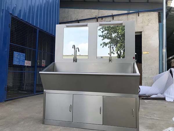 医用不锈钢洗手池采用优质304不锈钢板制造,耐腐蚀,抗晶间腐蚀。不锈钢医用洗手池有单人、双人、三人、四人及多人洗手池,出水方式有自动感应式、膝碰式、脚踏式。可自行选购电热水器、不锈钢出刷器。